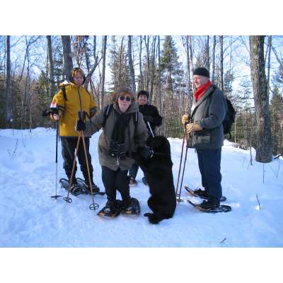 Josye,Jocelyne et Benoit, (deux amis qui se sont joints à nous ), et tout devant, il y a Gin... sans oublier Adele qui nous a joyeusement accompagnés tout le long du parcours.